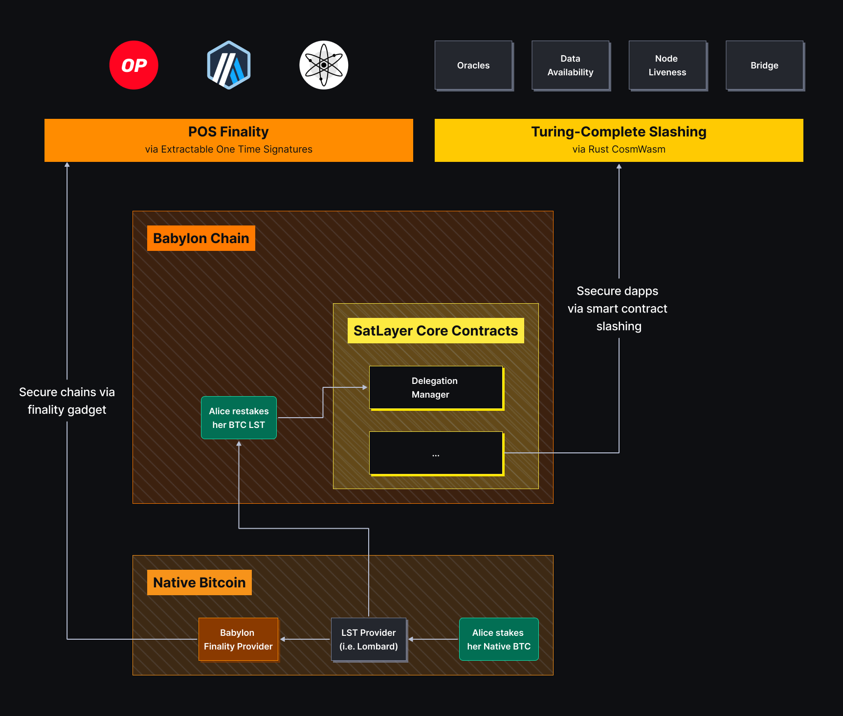 As part of this alliance, SatLayer will be Babylon's premier restaking provider, implementing a sophisticated suite of smart contracts on Babylon Chain with minimal trust assumptions. These smart contracts enable fully programmable BTC slashing, marking a significant advancement in Bitcoin's utility within decentralized finance.