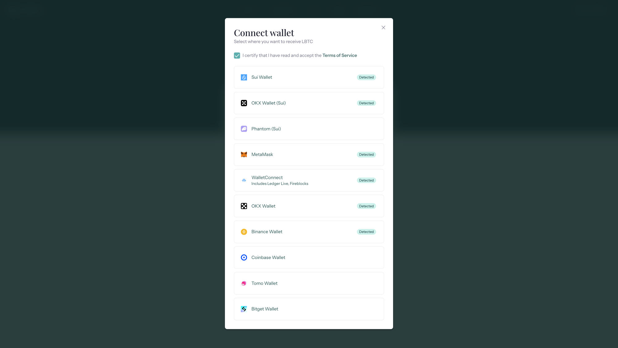- Before finalizing your BTC stake, double-check that your LBTC is being sent to the correct wallet address on Sui. Once verified, click ‘Confirm’ to proceed.